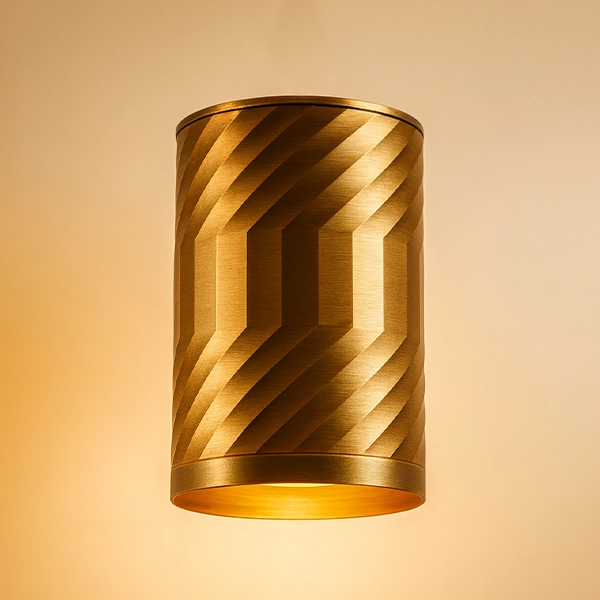 Bala cilíndrica para bombillo GU10 fabricada en aluminio texturizado color dorado, ideal para iluminación de acento en espacios interiores. Su diseño elegante resalta detalles arquitectónicos y decorativos, aportando un toque sofisticado. Se instala de forma sobrepuesta en techo e incluye socket GU10, tornillos y chazos plásticos. Soporta una carga nominal máxima de 7W, garantizando estilo y funcionalidad en cualquier proyecto.