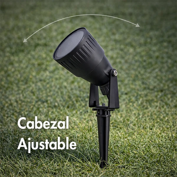 • Incorpora un cabezal ajustable, ideal para orientar el haz de luz y destacar plantas, senderos, fachadas, muros o elementos paisajísticos.
