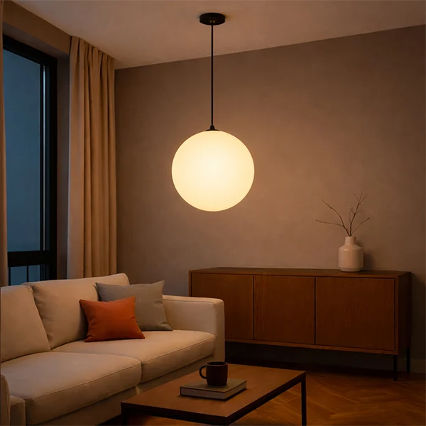 • Su forma esférica y vidrio opalizado aportan un toque decorativo que se integra con distintos estilos de diseño interior.