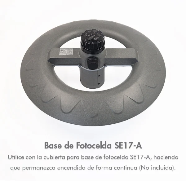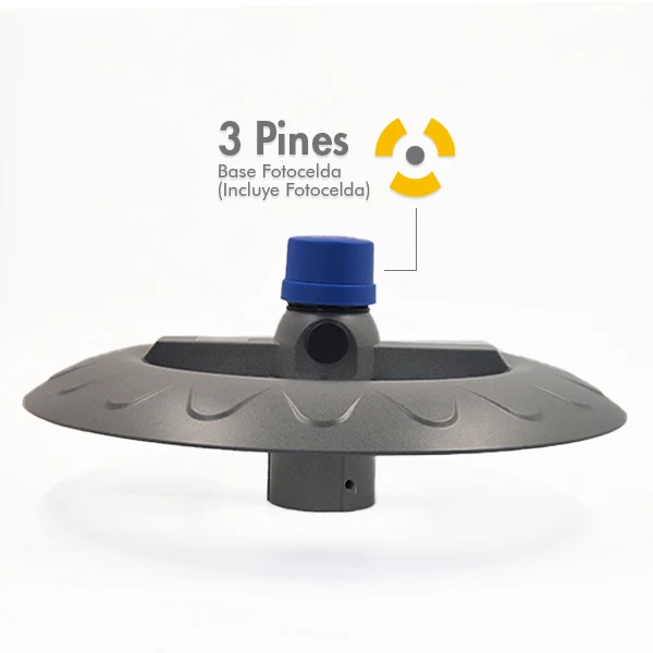 • Integra fotocelda de 3 pines, permitiendo un funcionamiento automático que enciende la luminaria al caer la noche y la apaga al amanecer, mejorando la eficiencia y reduciendo la intervención manual.