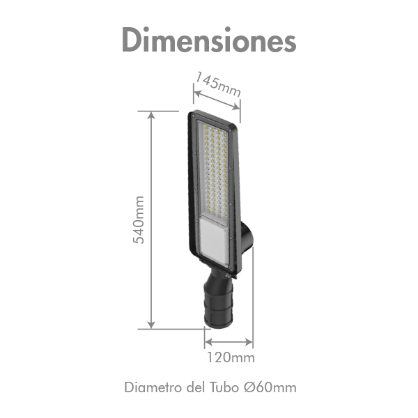 • Con 7.800 lúmenes, factor de potencia ≥0.9 y distorsión armónica <20%, ofrece un flujo luminoso estable, nítido y con un IRC de 80Ra, ideal para resaltar el entorno con claridad y seguridad visual. • Su brazo graduable permite ajuste entre ±15°, adaptable a instalación horizontal (180°) o vertical (90°), lo que la convierte en una opción ideal para postes, brazos metálicos o estructuras urbanas. • Con una vida útil de hasta 100.000 horas, esta luminaria LED garantiza ahorro energético, bajo mantenimiento y máxima durabilidad, representando una solución eficiente para proyectos públicos o privados que buscan calidad y cumplimiento con los estándares RETILAP.