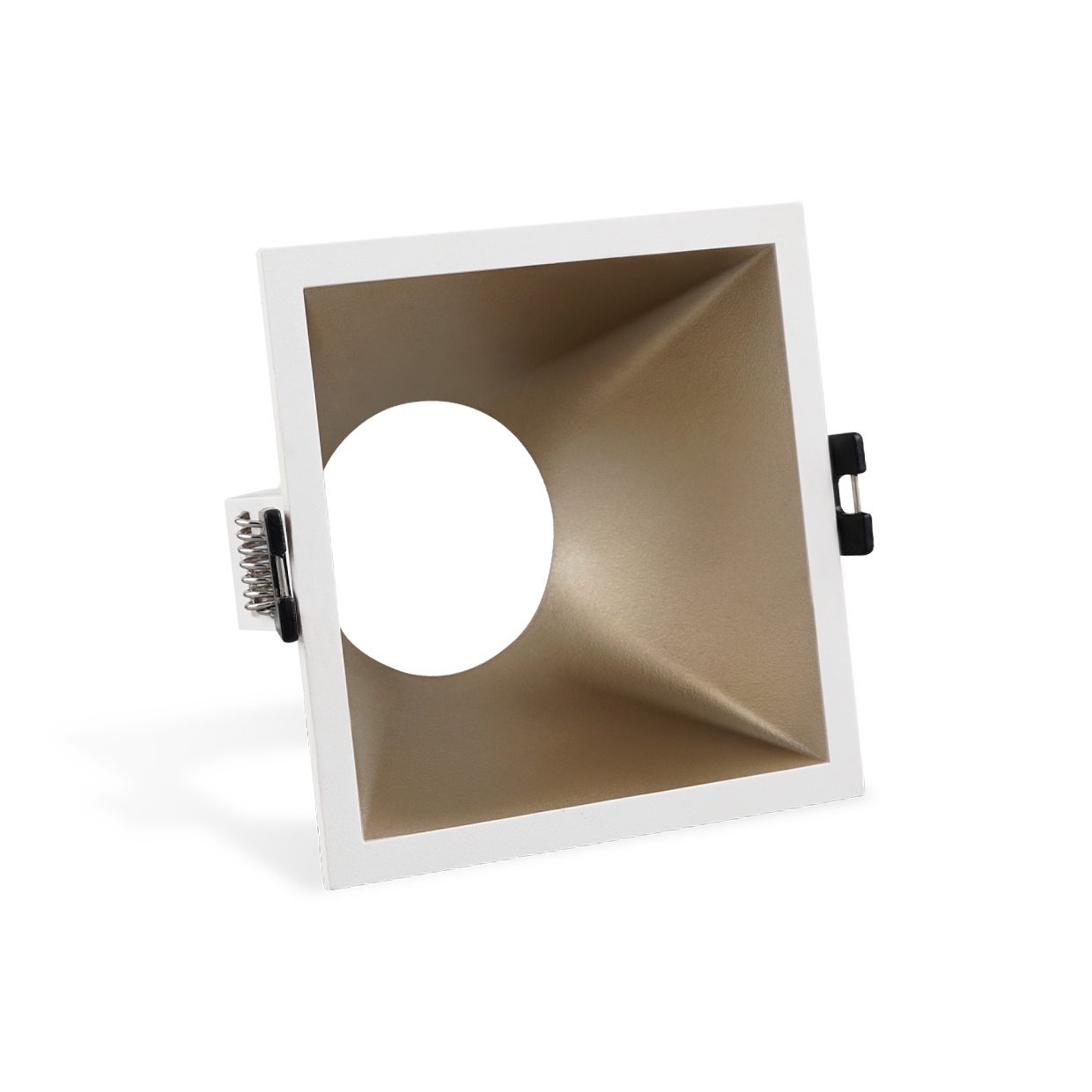 Bala para bombillo GU10 recesada DLGU10ASQ, ¡Ilumina con elegancia y precisión! Con su diseño cuadrado y recesado de 53mm, este accesorio de iluminación te brinda un haz de luz reducido, evitando deslumbramientos molestos. ¡Personaliza tu iluminación con bombillos LED GU10 y disfruta de un acabado homogéneo en blanco, negro o champagne! Instálala fácilmente con sus ganchos mariposa en techos y crea ambientes encantadores en salas, cocinas, oficinas y más.