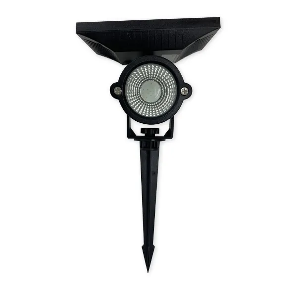 La Estaca Solar LED para jardín cuenta con un resistente chasis ABS y un panel solar policristalino que recarga su batería de litio. Su chip LED COB ilumina con un ángulo de 45° para luz focal. Fácil de instalar, sin cables ni herramientas, es ideal como estaca solar para jardín o exteriores. Ofrece encendido automático o manual, proporcionando iluminación eficiente y decorativa.