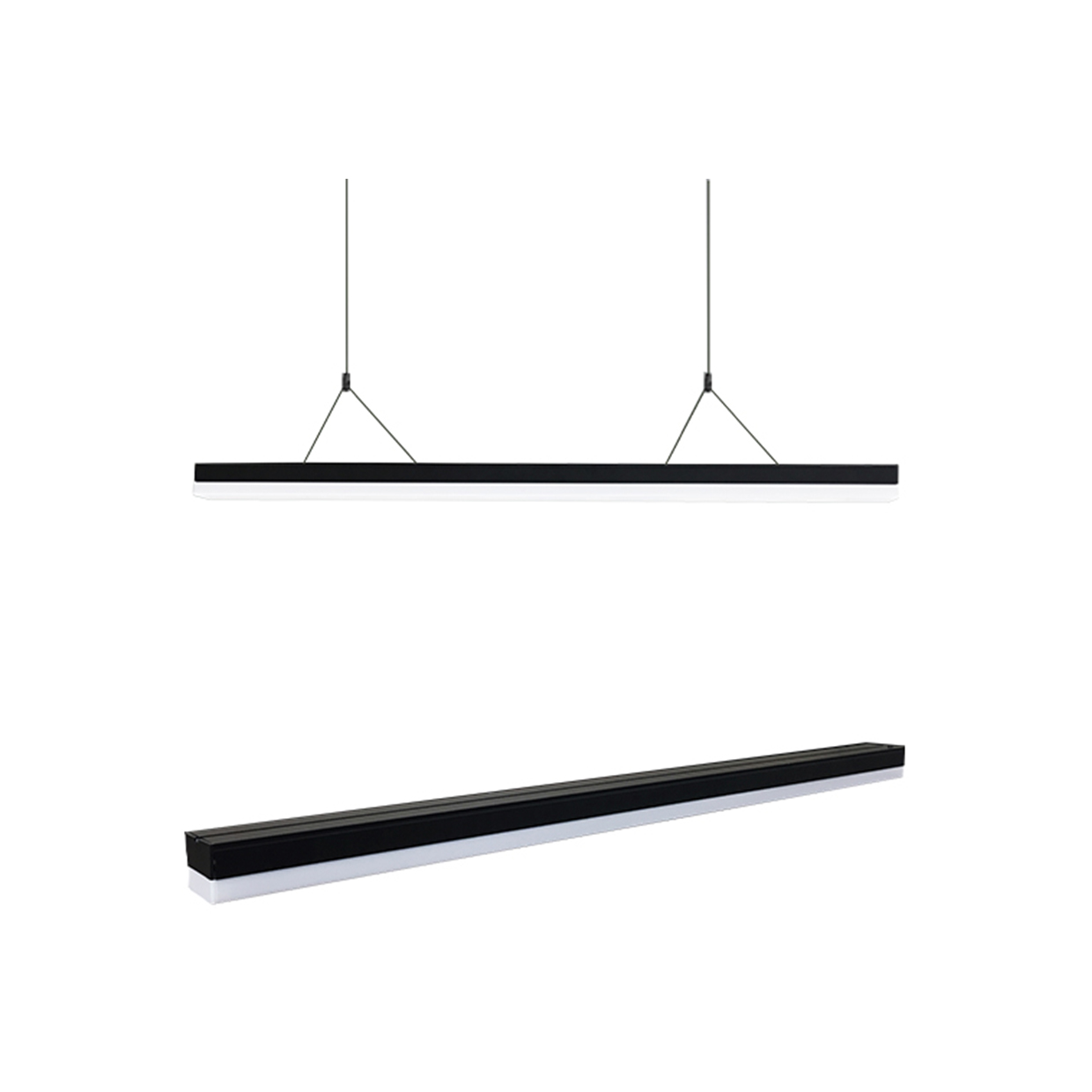 Es una de las formas de instalación menos comunes, pero se utiliza bastante en espacios de gran tamaño y con techos muy altos. La lámpara lineal LED colgante es una de las formas más elegantes de instalación para esta clase de luminarias; porque crea un espacio fuera de lo común, permite darle forma y hace que las luces se vean diferenciadas de las paredes. Esta clase de instalación no compromete la uniformidad ni el rendimiento de la luz. Se logra a través de un sistema de fijación donde quedan suspendidas las luminarias de forma completamente segura.