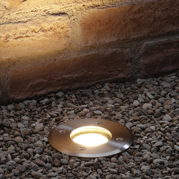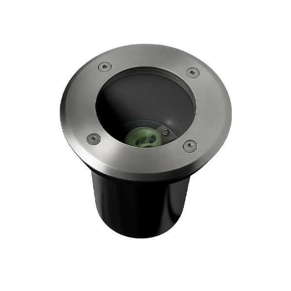• Su diseño para incrustar en piso ofrece una iluminación dirigida hacia arriba, ideal para crear efectos lumínicos decorativos sin afectar la estética del entorno.