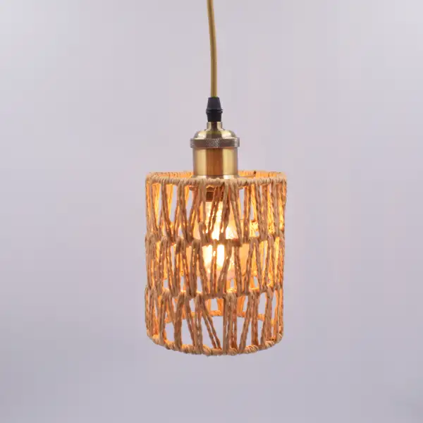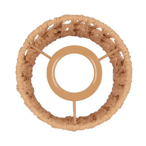 Gracias a su diseño tejida a mano en color marrón, puede usarse como pantalla colgante o lámpara de mesa, adaptándose a estilos rústicos, bohemios o naturales.