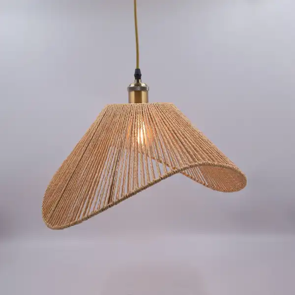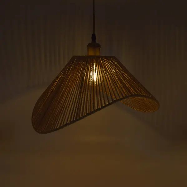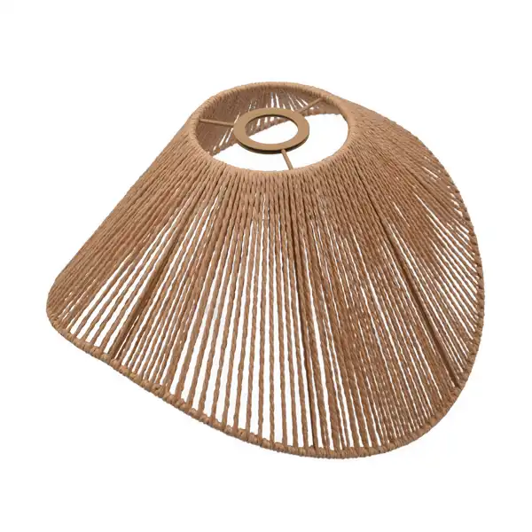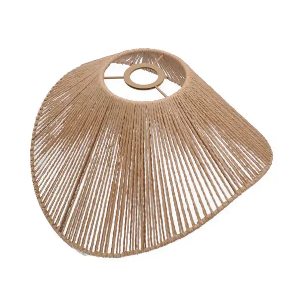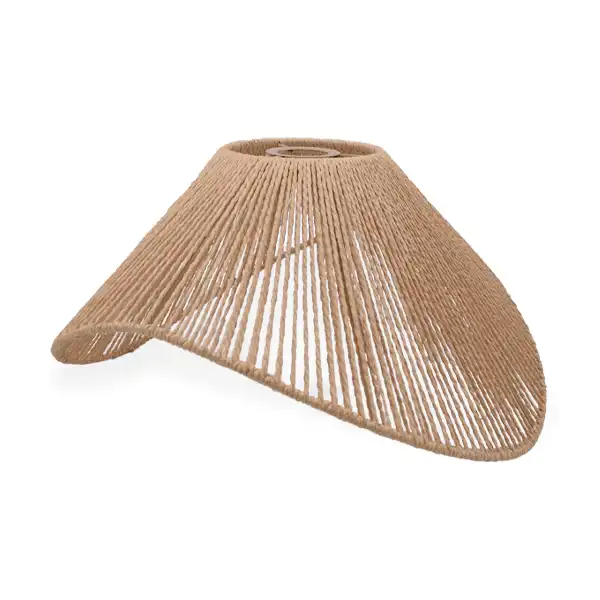 La caperuza artesanal tipo trapezoide con ondas grandes está elaborada en fibras naturales con un acabado marrón. Su diseño curvo y abierto permite utilizarla como pantalla colgante o lámpara de mesa. Aporta un estilo cálido, rústico y decorativo, ideal para iluminar salas, comedores, estudios, cafés o cualquier ambiente que busque un toque natural y artesanal.
