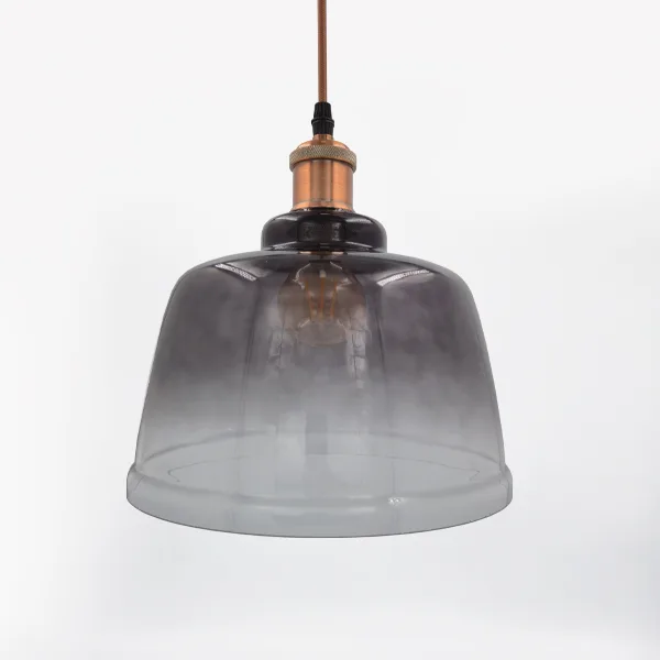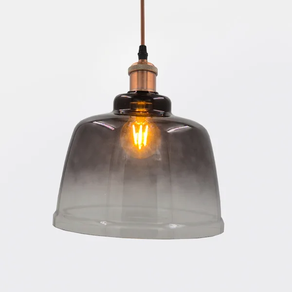 La caperuza tipo campana de vidrio traslúcido ahumado con acabado elegante y moderno. Su diseño estilizado permite una difusión uniforme de la luz, creando ambientes cálidos y sofisticados. Ideal para complementar luminarias decorativas en hogares, oficinas o espacios comerciales, aportando un toque distintivo y contemporáneo a cualquier proyecto de iluminación.