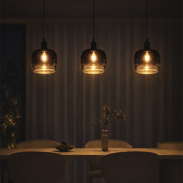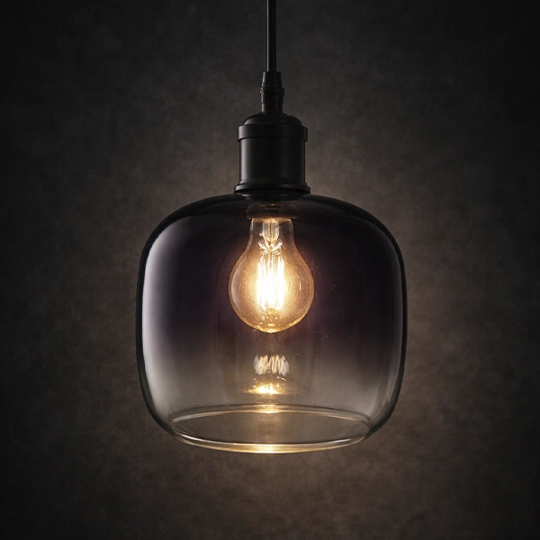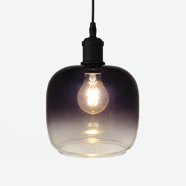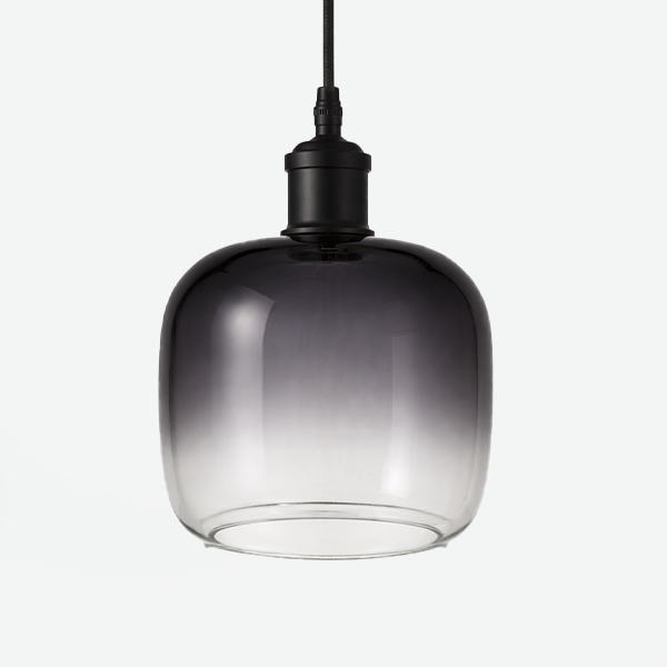 Cilindro con bordes redondeados en vidrio traslúcido ahumado, diseñado para aportar elegancia y modernidad a tus luminarias. Su acabado en degradé crea un efecto visual sofisticado que difumina la luz de forma uniforme, ideal para proyectos de iluminación interior decorativa en salas, comedores o espacios comerciales.
