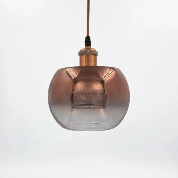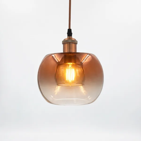Caperuza de vidrio semiesférica en color oro rosado, ideal para realzar luminarias decorativas con un estilo moderno y elegante. Su tonalidad sutil aporta calidez y sofisticación a los espacios, generando un efecto atractivo al difundir la luz. Perfecta para lámparas colgantes, de pared o de mesa, combina diseño y versatilidad, siendo una opción decorativa única para proyectos de iluminación residencial o comercial.