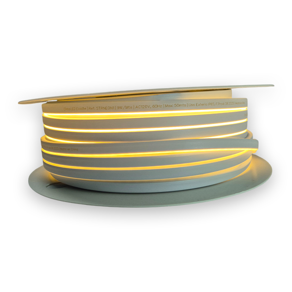 • Cinta LED Neón 9W/M, ideal para iluminación decorativa continua en interiores o exteriores.