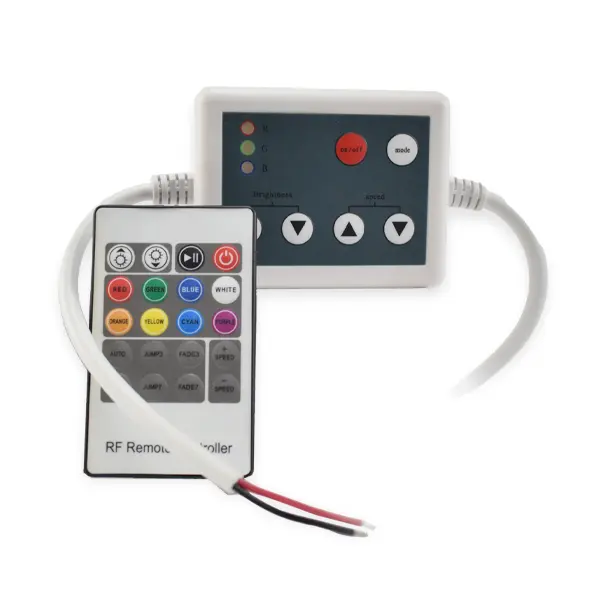 El controlador para luminarias RGB es una innovadora solución para crear ambientes cautivadores y personalizados en entornos sumergibles. Diseñado para sincronizar varias luminarias RGB DC12V, este dispositivo proporciona una experiencia visual única al permitir la creación de secuencias de colores armoniosas y cautivadoras bajo el agua. Su avanzada tecnología de control RF (Radiofrecuencia) eleva la comodidad al siguiente nivel, permitiendo el manejo de las luminarias a distancia sin necesidad de apuntar directamente al dispositivo. Este controlador se convierte en la herramienta perfecta para quienes buscan personalizar la iluminación sumergible de manera fácil y conveniente, llevando la creatividad a nuevas profundidades.