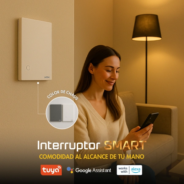 • Interruptor SMART sencillo con diseño moderno, ideal para controlar la iluminación de tu hogar.