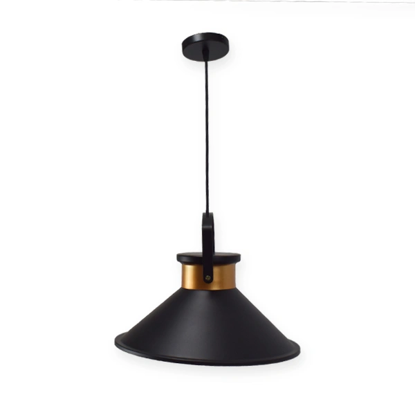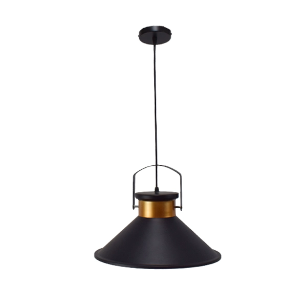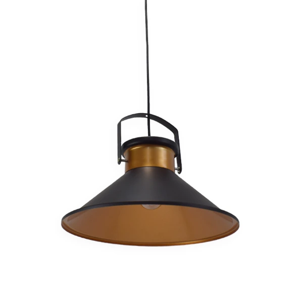 La luminaria colgante CHL20 de estilo retro en color negro con detalles dorados en el interior. Perfecta para decorar e iluminar interiores modernos con un toque elegante y vintage.