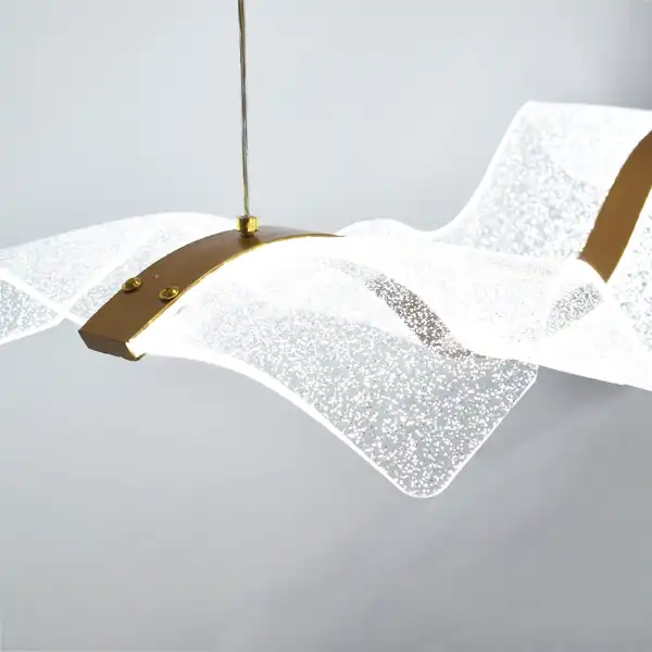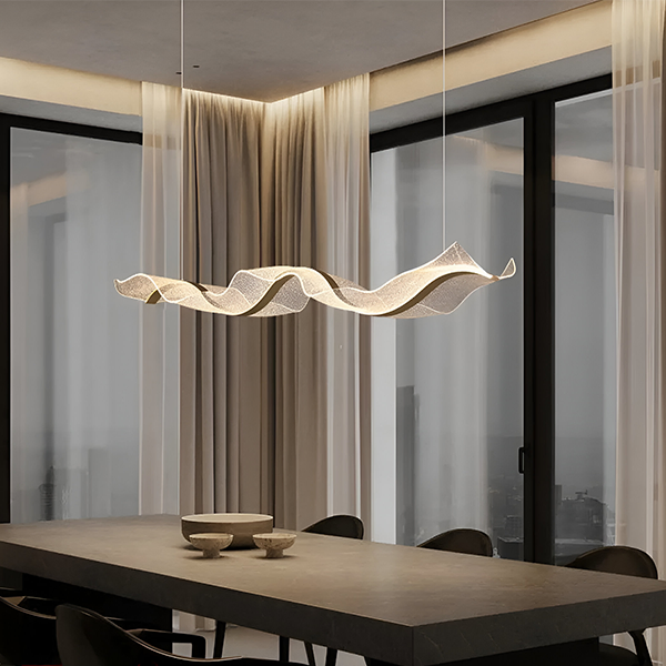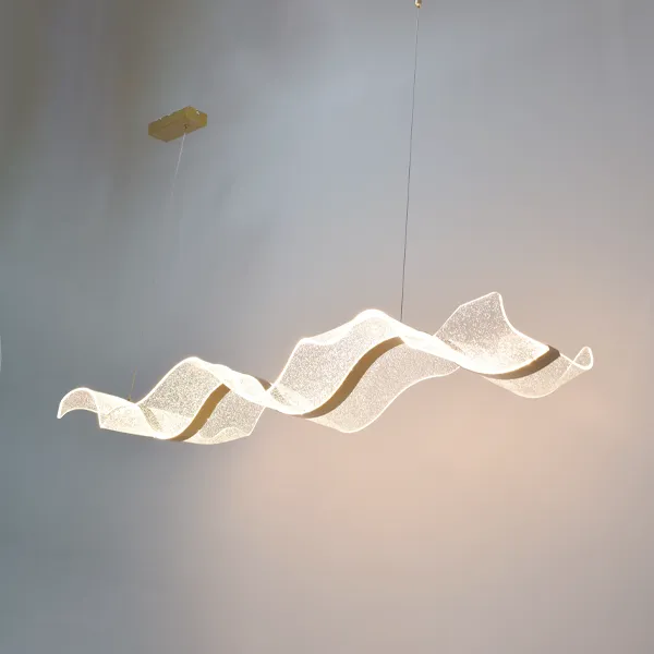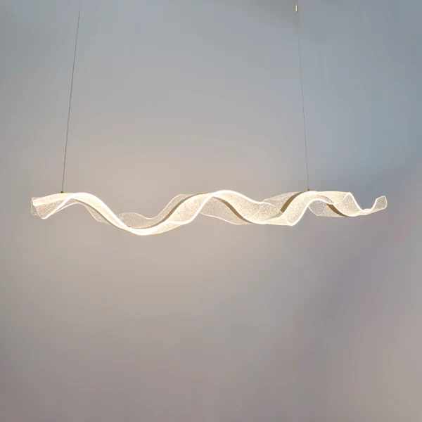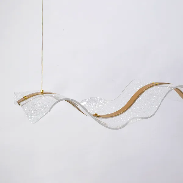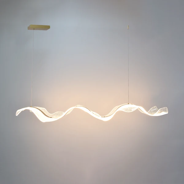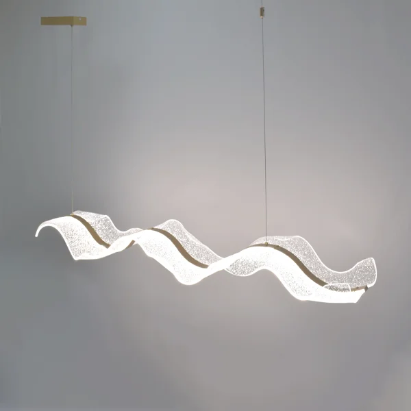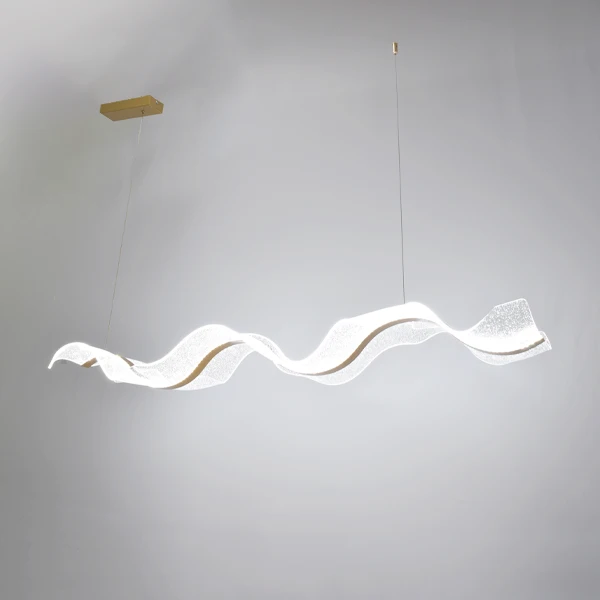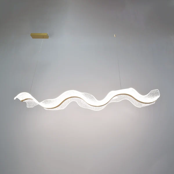 La luminaria LED colgante con forma de onda presenta un diseño moderno con material acrílico duradero. Ofrece tres opciones de temperatura de color (3000K, 4000K, 6500K) para adaptarse a diferentes ambientes interiores, proporcionando una iluminación uniforme y acogedora. Ideal para salas de estar, comedores y áreas de trabajo.