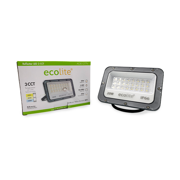 El Reflector LED 20W 3 CCT es una opción eficiente para iluminar exteriores con potencia y versatilidad. Permite seleccionar entre 3000K, 4000K y 6500K mediante un interruptor integrado. Su diseño hermético IP66, chasis de aluminio y lente IK08 aseguran resistencia, durabilidad y una iluminación confiable en cualquier proyecto.